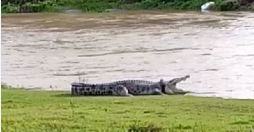 Menurut Larota salah seorang pengendara yang lewat di sekitar Sungai Palu mengatakan bahwa lumayan lama buaya tersebut berjemur.