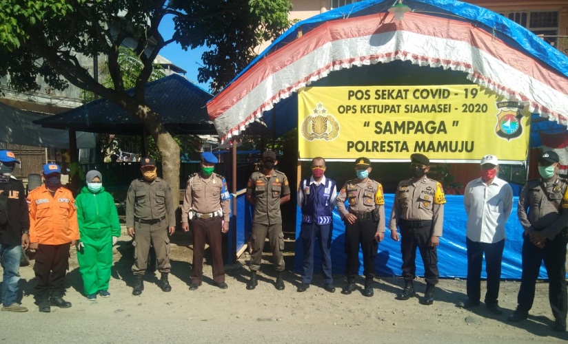 MAMUJU – Celebesta.com, Kepolisian Resor Kota Mamuju menyiagakan personil untuk melakukan pemeriksaan diperbatasan antar daerah melalui Posko sekat Pencegahan Covid-19 di Jalur Trans Sulawesi Kecamatan Sampaga, Kabupaten Mamuju dan Kabupaten Mamuju Tengah, Rabu, (6/5/2020).