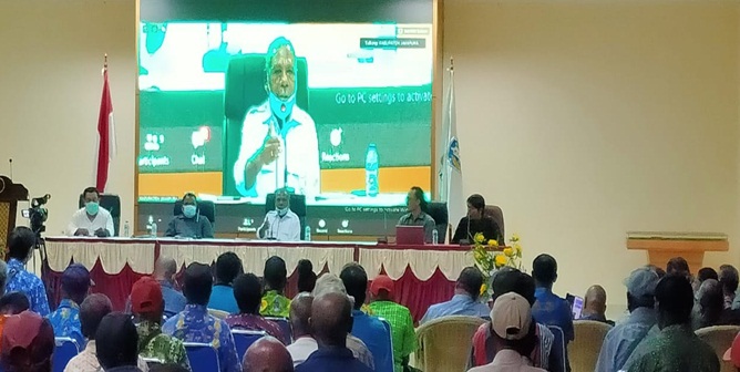 Sementara itu, Bupati Jayapura Mathius Awoitauw menyampaikan terkait Inpres Percepatan Pembangunan Kesejahteraan di Provinsi Papua dan Papua Barat (Inpres No. 9 Tahun 2020), masyarakat perlu di data dengan baik.