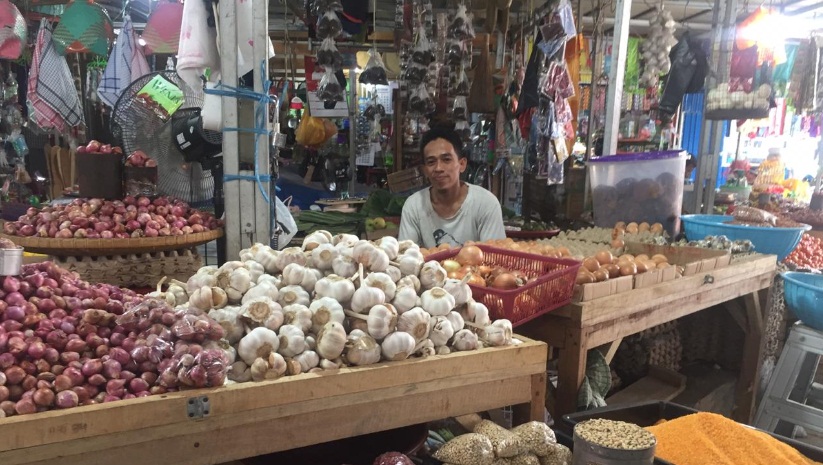 Faisal (25), pedagang bahan pokok berjualan di Pasar Masomba, Kota Palu menjelaskan kini menjelang Hari Natal bahan pokok naik, seperti bawang merah, bawang putih, telur, minyak, untuk saat ini bahan pokok yang lainya belum ada kenaikan.