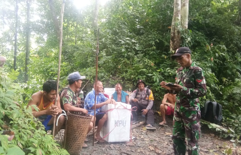 Celebesta.com – BANGGAI, Demi mensukseskan pesta demokrasi tahun 2020 di Kabupaten Banggai, Sulawesi Tengah aparat TNI-Polri bersama petugas KPPS di TPS 3, Dusun Bohinunuk, Desa Simpang 2, Kecamatan Simpang Raya pada 8 Desember 2020 penuh dengan perjuangan.
