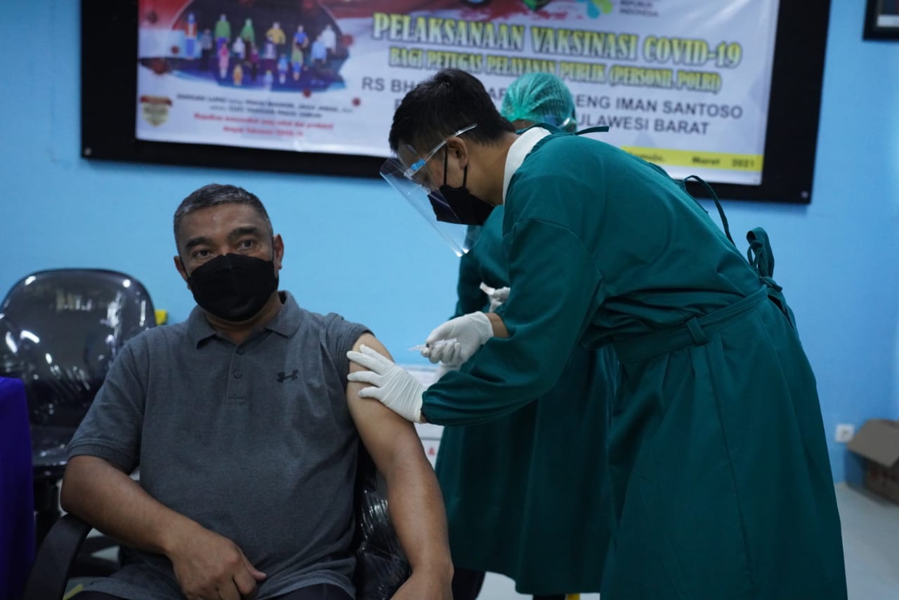 “Hari ini bapak Kapolda bersama beberapa orang Pejabat lingkup Polda Sulbar menerima vaksin Sinovac, tujuannya untuk meyakinkan masyarakat bahwa vaksin ini aman dan berguna untuk menangkal penyebaran virus covid,” tutur Perwira Polri berpangkat tiga melati ini.