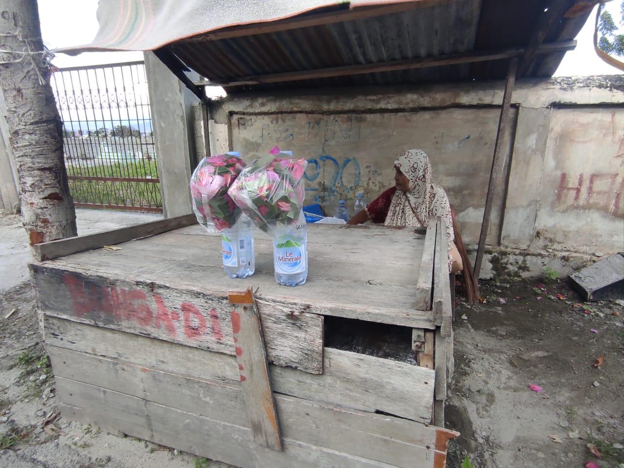 “Biasanya kami membawa bunga untuk di jual yaitu 10 kantong perhari, dalam 1 kantong itu dijual 5 ribu per kantong dengan air, dan yang terjual sekitar 2-3 kantong, biasa juga sama sekali tidak ada yang terjual,” ungkapnya.