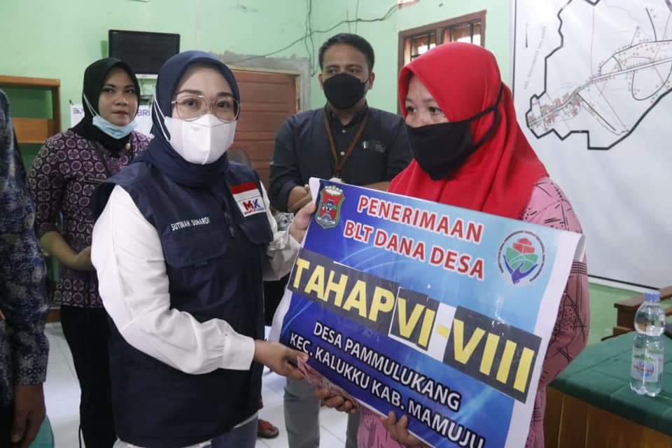 Celebesta.com – MAMUJU, Bupati Mamuju, Hj. Sitti Sutinah Suhardi pada Jumat (6/8/2021) menyerahkan Bantuan Langsung Tunai (BLT) Dana Desa untuk bulan Juni sampai Agustus dan Kartu Keluarga Sejahtera (KKS) untuk masyarakat Desa Pammulukang.