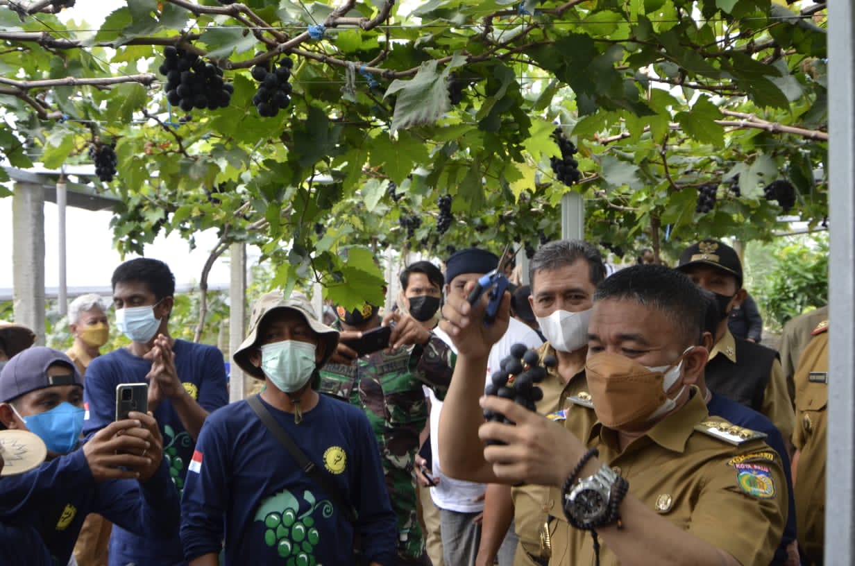 Celebesta.com – PALU, Wali Kota Palu, H. Hadianto Rasyid, SE bersama Kelompok Tani Duyu Bangkit memanen buah anggur di jalan Gawalise, Kelurahan Duyu, Kecamatan Tatanga, Kota Palu pada Senin, 13 September 2021.