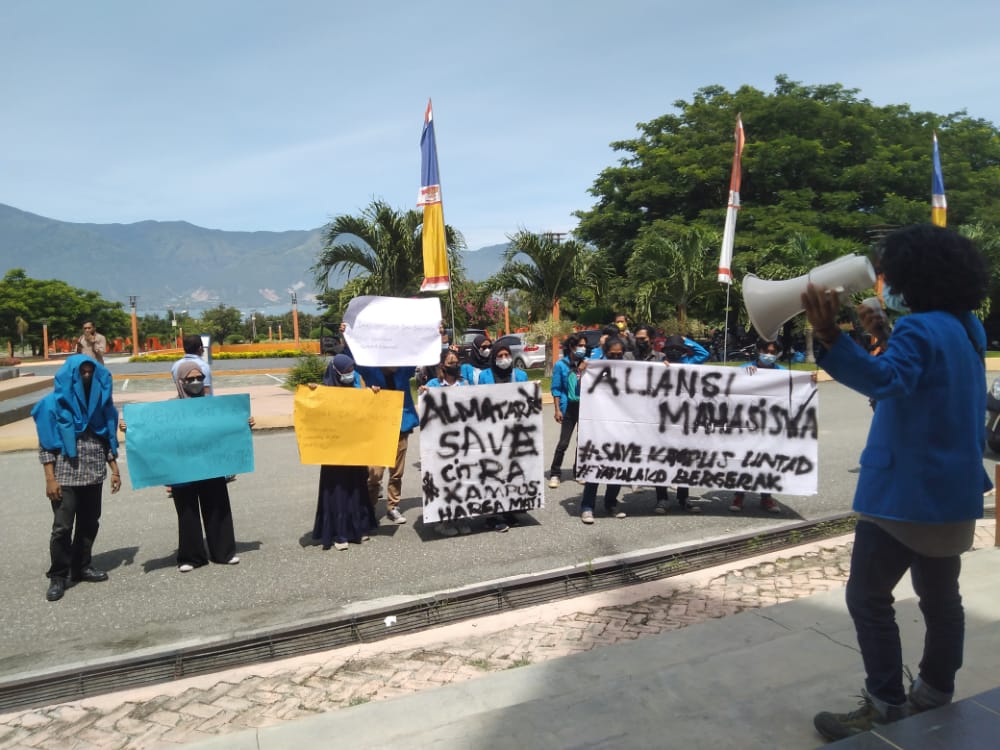 “Kami berdiri disini untuk meminta klarifikasi terkait isu yang beredar di Universitas Tadulako yang sebagaimna diisukan bahwa kampus kita diduga ada korupsi dan oligarki,” tegas Kurniawan dalam orasinya, Jumat (17/9/2021).
