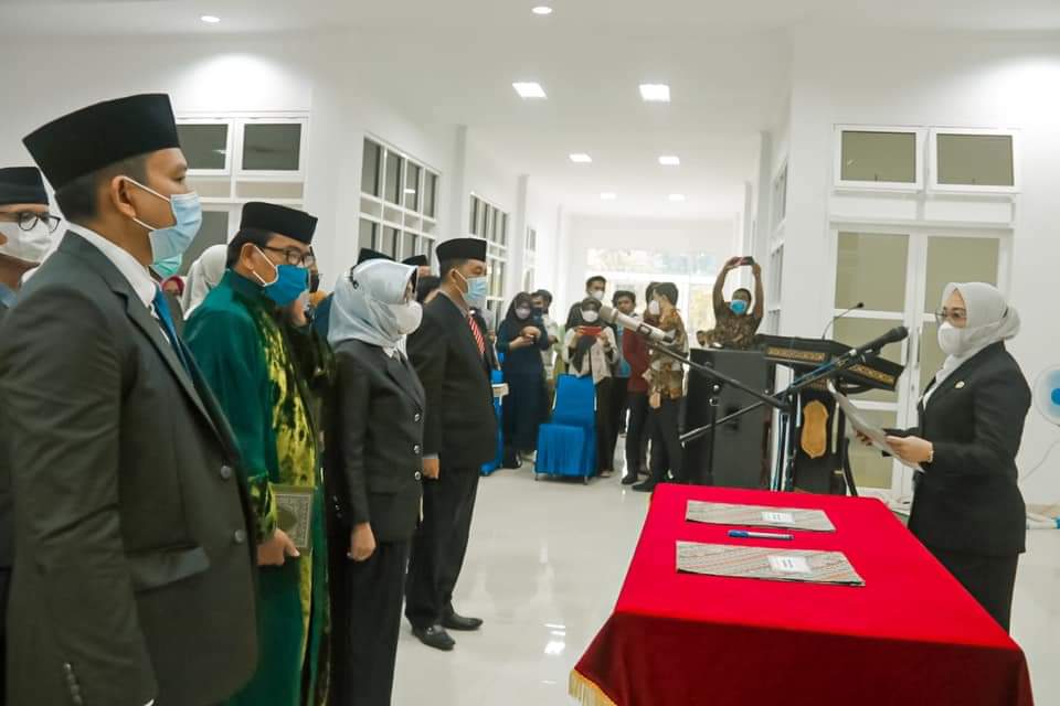Celebesta.com – MAMUJU, Pelantikan dan pengambilan sumpah jabatan pimpinan tinggi pratama atau pejabat eselon dua, hari ini dilaksanakan, Kamis, (30/9/2021). Sejumlah nama pejabat yang mayoritas pimpinan Organisasi Perangkat Daerah (OPD) dibacakan dalam surat keputusan bernomor 188.45/439/KPTS/IX/2021 dalam acara pelantikan yang dilaksanakan di aula kantor Satpol PP kompleks kantor Bupati Mamuju.
