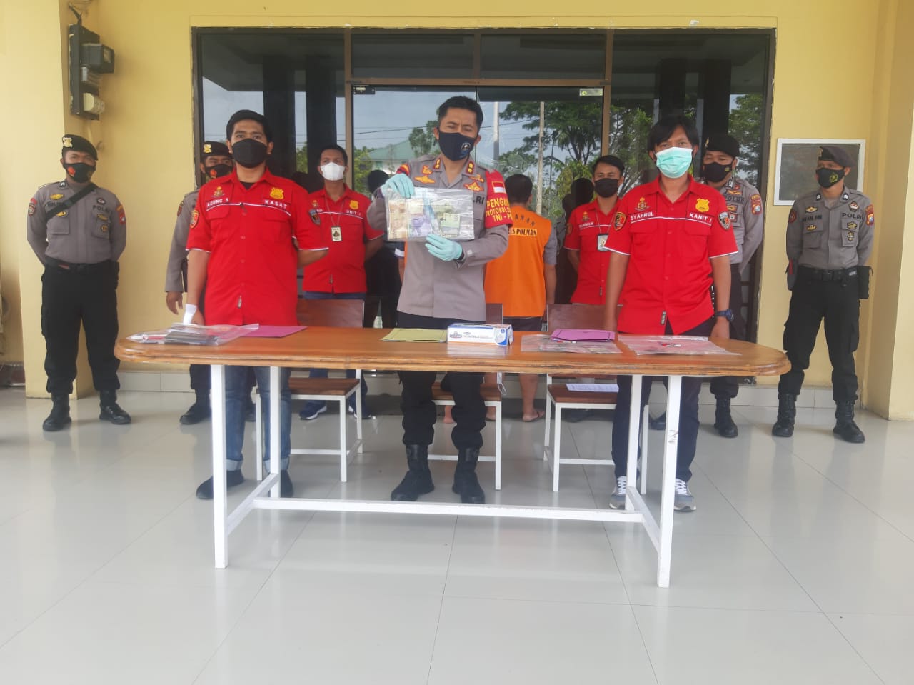 Polres Polman-Kapolres Polman AKBP Ardi Sutriono, S.IK didampingi Kasat Reskrim Polres Polman IPTU Agung Setyo Negoro, S.T.K.,S.I.K dan Kanit Resum Sat Reskrim Polres Polman IPDA Syahrul,SH memimpin Press Release kasus tindak pidana judi jenis sabung ayam. Kamis (28/10/2021).