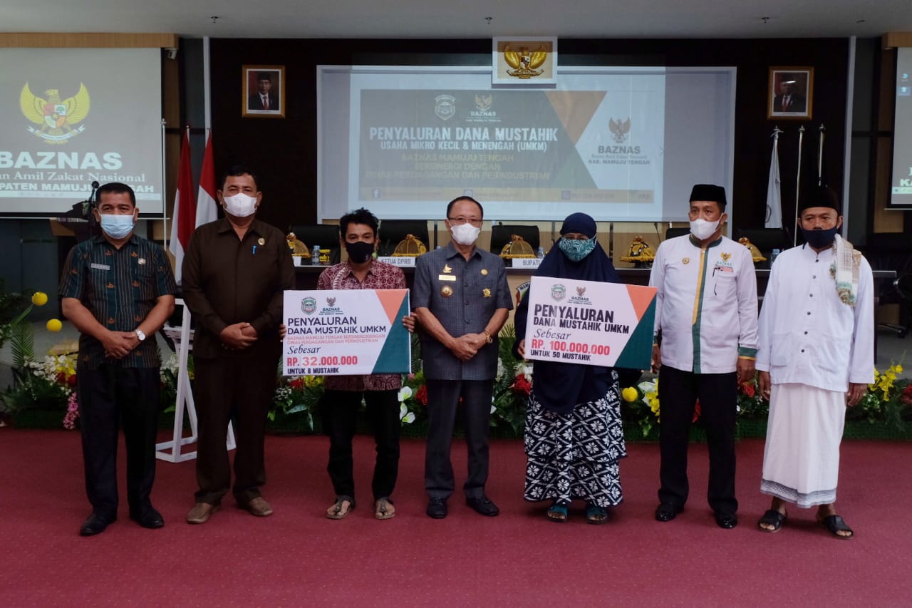 Penyaluran anggaran sebesar Rp.132 juta, untuk bantuan modal usaha bagi mustahik pelaku UMKM di Mamuju Tengah, dan Baznas menggandeng Diskoperdag Mamuju Tengah, dalam rangka proses verifikasi terhadap pelaku UMKM mustahik penerimaan bantuan modal usaha, dan diserahkan secara simbolis oleh Bupati Mamuju Tengah HM Aras T, Jumat (5/11/21).