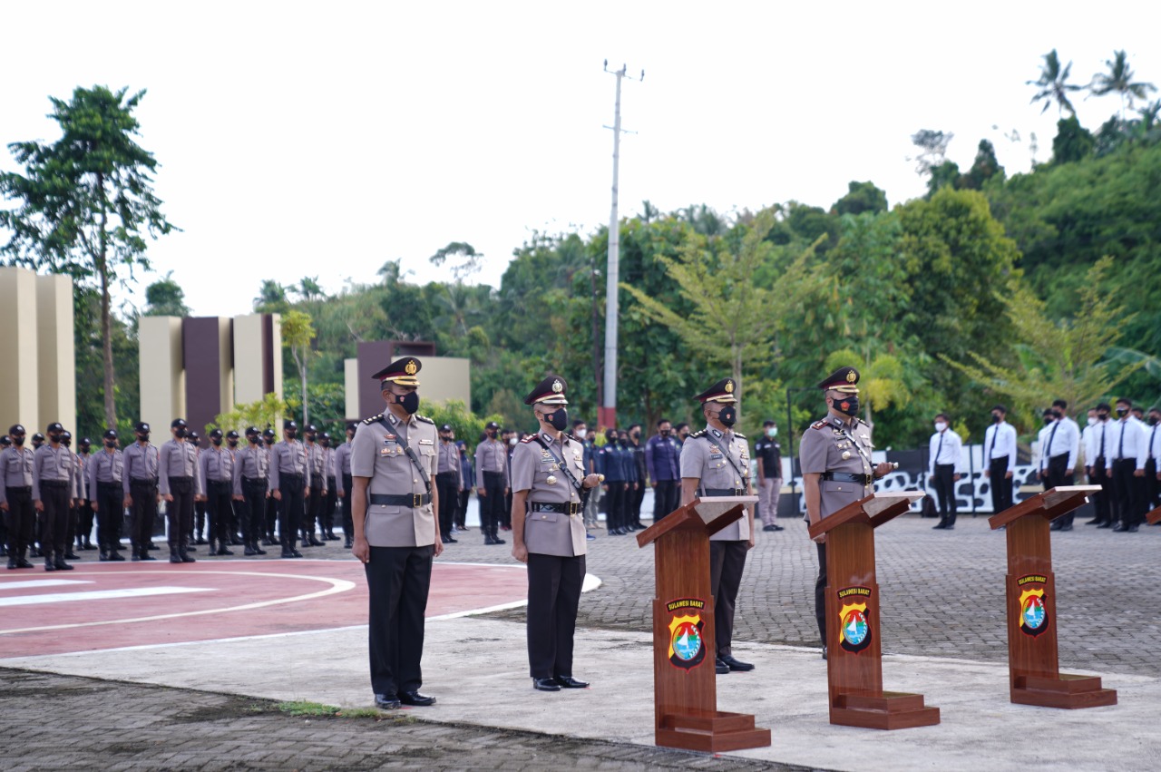 Upacara yang berlangsung di Lapangan apel Mapolda Sulbar tersebut dihadiri oleh para pejabat utama dan personil Polda Sulbar, Rabu (09/02/22).