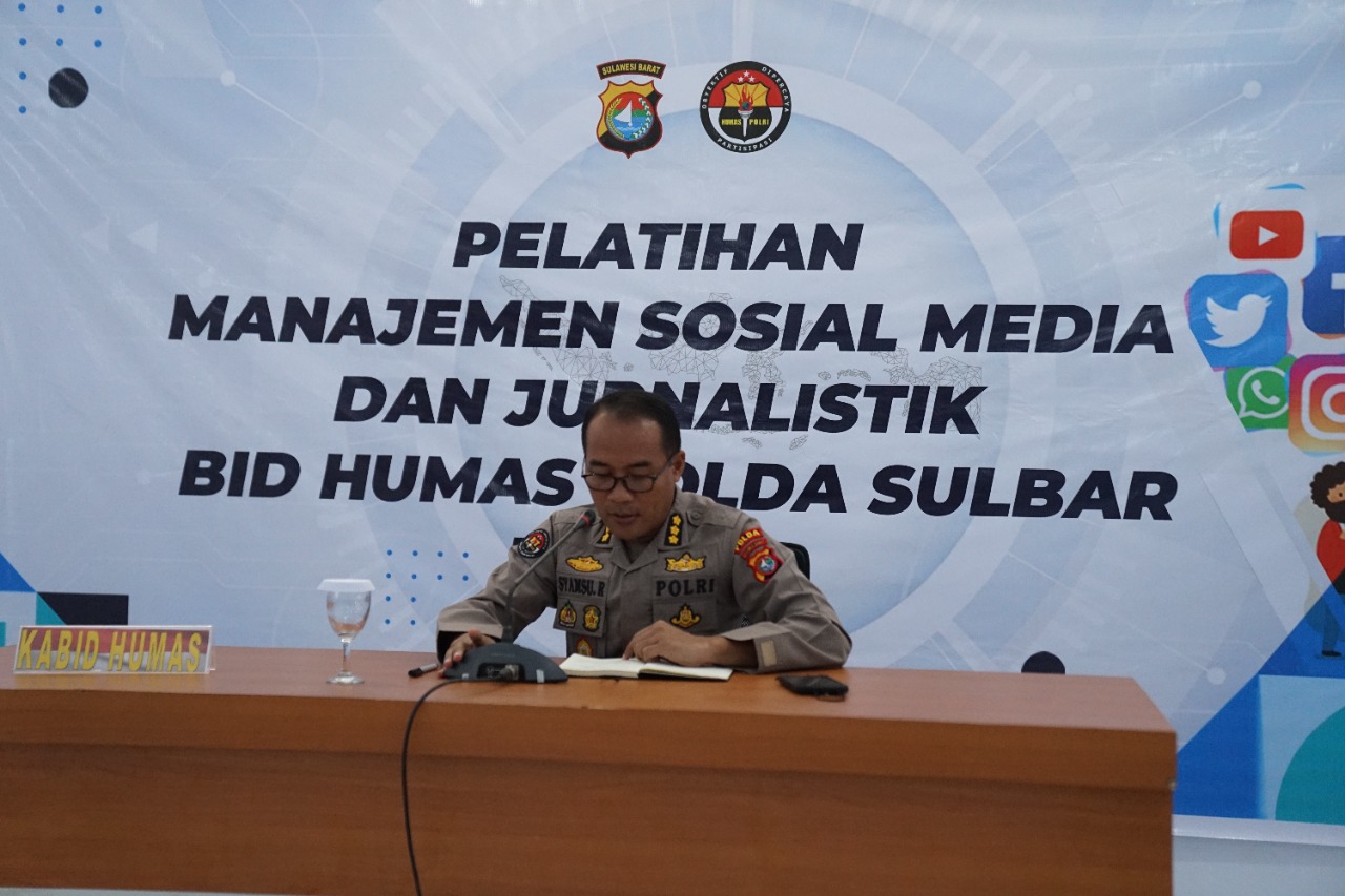 Memanfaatkan perkembangan media sosial yang semakin pesat, Bid Humas Polda Sulbar menggelar pelatihan manajemen sosial media dan jurnalistik yang dibuka langsung Kabid Humas Polda Sulbar dKombes Pol Syamsu Ridwan di aula Marannu Polda Sulbar, Rabu (08/06/22).