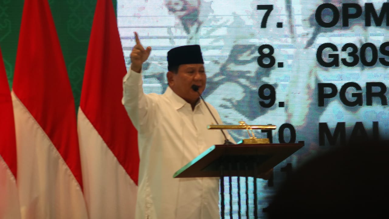 Pada Munas ke-11 KAHMI, Prabowo didaulat menjadi pembicara dengan tema merawat kesatuan, menegakan demokrasi dan menjaga kedaulatan.
