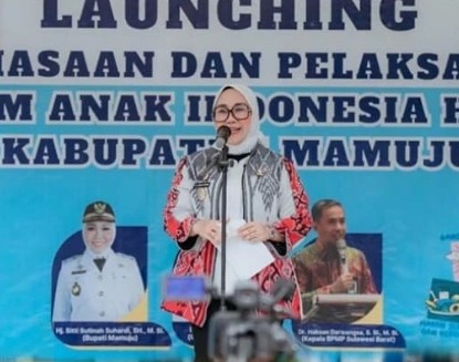 celebesta.com – MAMUJU, Menghadiri launching 7 Kebiasaan Anak Indonesia Hebat tingkat Kabupaten Mamuju yang dipusatkan di SD Negeri 1 Mamuju, Bupati Dr. Hj. Sitti Sutinah Suhardi, memberikan motivasi kepada sejumlah anak sekolah yang mengikuti kegiatan tersebut. Ia mengatakan kebiasaan seperti bangun pagi, beribadah, berolahraga, makan sehat dan bergizi, gemar belajar, bermasyarakat, serta tidur cepat adalah kebiasaan yang sangat baik untuk dibiasakan, bahkan dengan semangat bupati dua periode ini mendo’akan anak yang melakukan tujuh kebiasaan anak Indonesia hebat akan menjadi bupati, menjadi dokter, polisi, tentara, dan menjadi orang-orang yang sukses.