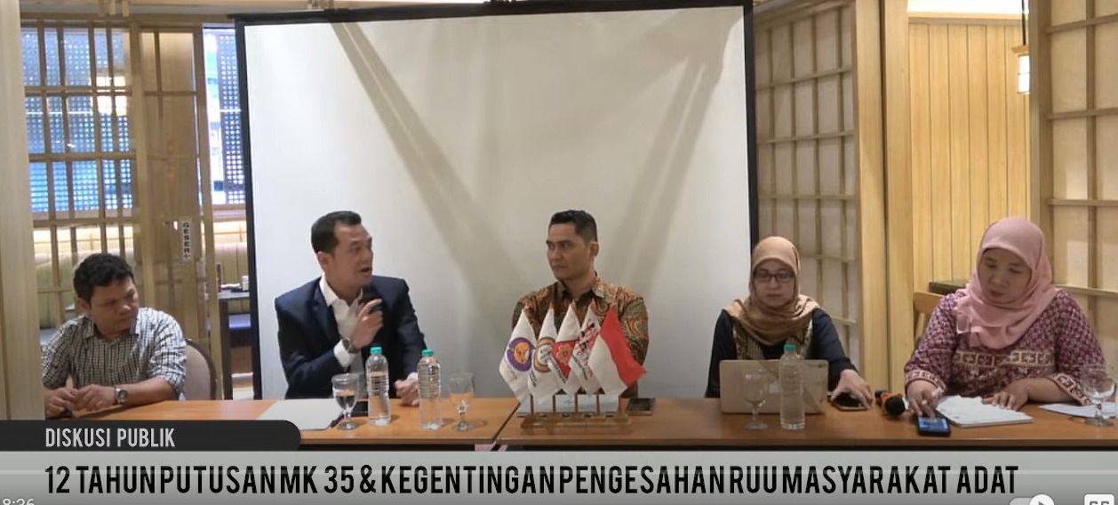 Sementara itu, Erasmus Cahyadi, Deputi II Sekjen Bidang Advokasi dan Politik AMAN juga menyampaikan bahwa terjadi pembelokan dari Putusan MK 35, dimana hutan adat saat ini dikategorisasikan berbeda dengan Hutan Hak sebagaimana mandat putusan MK.