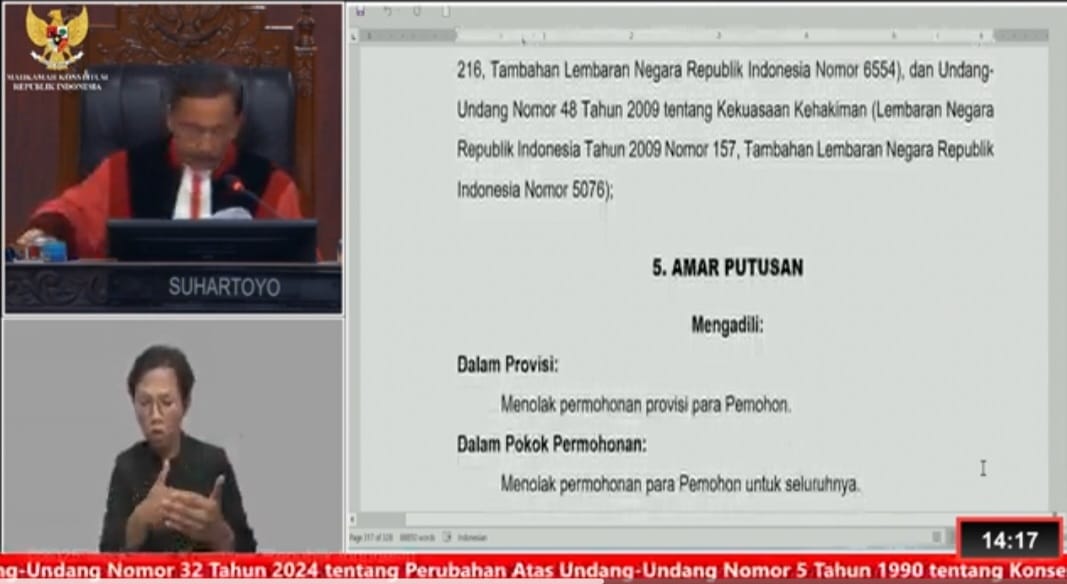 Celebesta.com – JAKARTA, Mahkamah Konstitusi (MK) Menolak Permohonan Uji Formil Undang-Undang Konservasi Sumber Daya Hayati dan Ekosistemnya (UU KSDHAE) yang diajukan oleh tiga organisasi masyarakat sipil dan perwakilan Masyarakat Adat.
