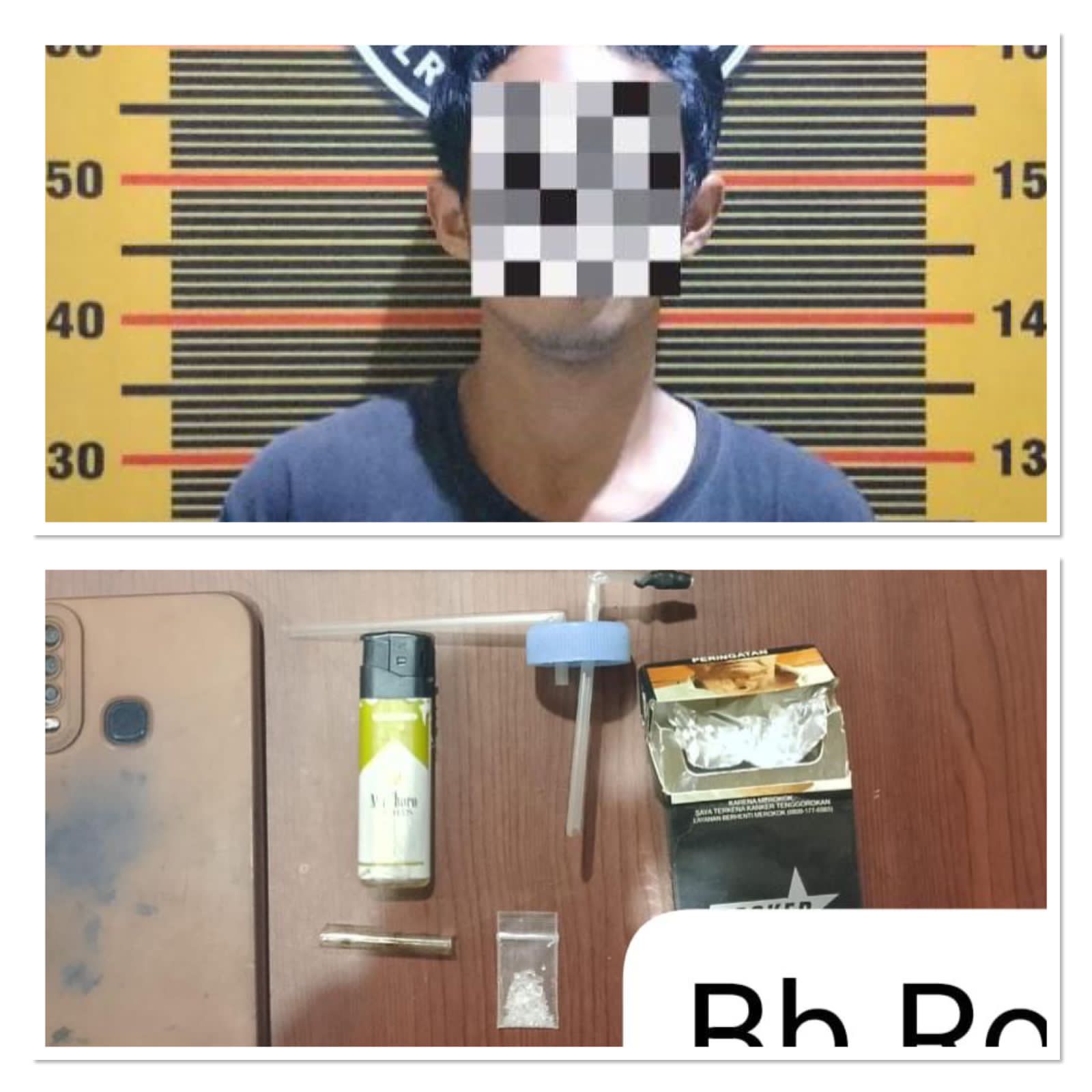Dalam penangkapan tersebut, Satnarkoba berhasil mengamankan barang bukti berupa 1 sachet plastik berisi kristal bening diduga narkoba jenis sabu, 1 buah alat isap (bong), 1 buah kaca pireks, 1 buah korek gas, dan 1 unit telepon genggam,