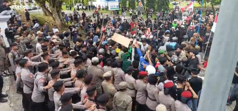 Demi mengantisipasi situasi yang semakin memanas dan menjaga ketertiban, aparat akhirnya melakukan tindakan tegas terukur dengan membubarkan massa menggunakan tembakan gas air mata.