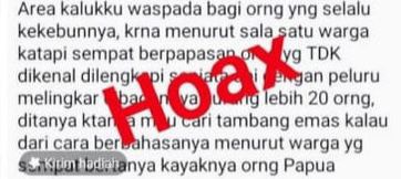 Dalam postingan tersebut disebutkan adanya imbauan agar warga tidak pergi ke kebun seorang diri karena diduga terdapat sekelompok orang membawa senjata dan peluru yang melingkar di dada.