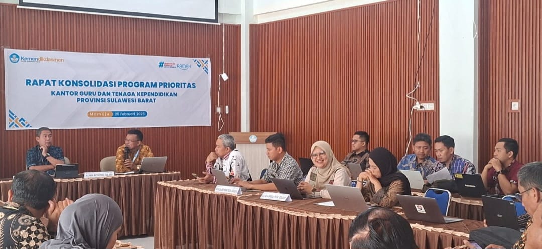 Celebesta.com – MAMUJU, Guna mendukung Visi dan Misi Gubernur Sulawesi Barat Suhardi Duka dan Wakil Gubernur Salim S. Mengga, Badan Pengelolaan Keuangan dan Aset Daerah (BPKAD) Provinsi Sulawesi Barat yang diwakili oleh Plt. Sekretaris, Faika Kadriana Ishak dan Plt. Kepala Bidang Anggaran dan Bina Kabupaten Abd. Kuddus menghadiri Rapat Konsolidasi Program Prioritas yang diselenggarakan oleh Kantor GTK Provinsi Sulawesi Barat, Kamis, 26 Februari 2026, bertempat di Aula Rapat Lantai II Kantor GTK Sulbar.